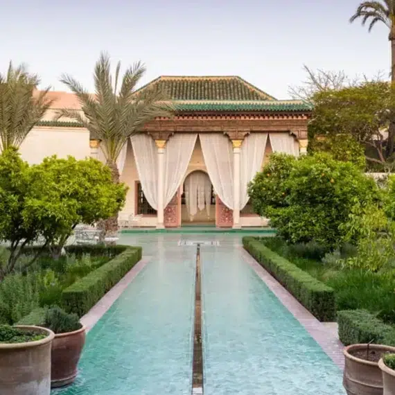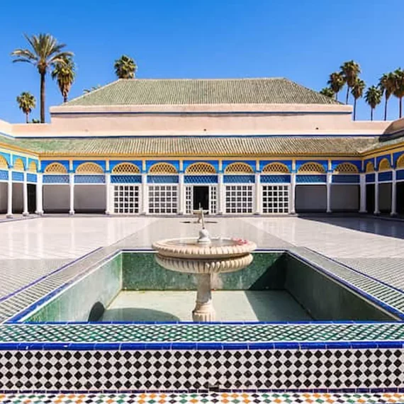 Au cœur du tumulte des souks se cache ce jardin islamique restauré. Le contraste entre le vert luxuriant des plantes et le bleu des fontaines est un pur bonheur pour un shooting photo à Marrakech.