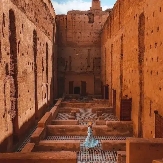 Vivez une séance photo hors du temps au Palais El Badiî, un décor de ruines grandioses et de murs ocre idéal pour des photos éditoriales et minimalistes au cœur de l’histoire marocaine.
