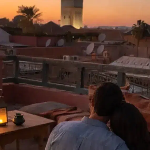 Pour finir la séance, rien ne vaut une vue sur les toits de la ville avec les montagnes de l’Atlas à l’horizon. Les terrasses de la place Jemaa el-Fna ou des riads privés offrent cette « Golden Hour » si chère aux photographes.