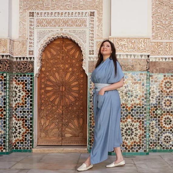 Capturez l’essence de l’art arabo-andalou lors d’un shooting photo à la Medersa Ben Youssef, où la symétrie des mosaïques offre un cadre magistral pour vos portraits à Marrakech.