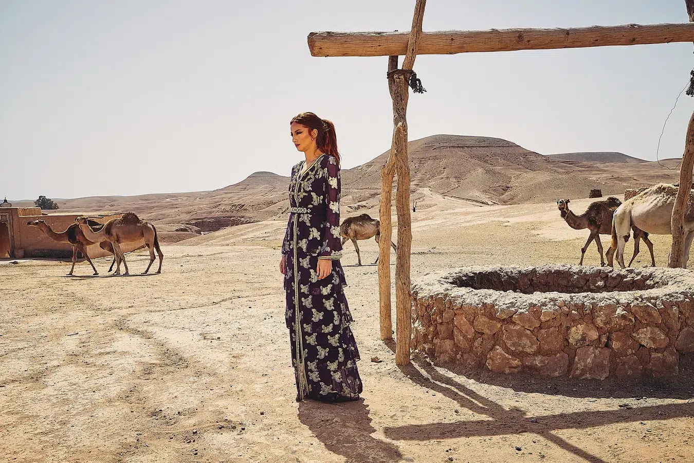 Je vous accompagne comme un véritable photographe de mode à Marrakech : direction de pose, choix des meilleurs angles, recherche de décors (puits en pierre, structures en bois, lignes du paysage), et conseils pour un rendu premium. Cette expérience convient aussi bien aux voyageurs en quête d’un souvenir d’exception qu’aux créateurs, influenceuses, marques ou modèles souhaitant réaliser un shooting photo professionnel à Agafay.